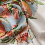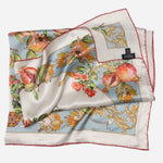 This design feels truly special to me, with its delicate ribbons, pearls, and pomegranate flowers beautifully printed on the softest silk satin. It’s luxurious, timeless, and a little piece of Italy you can wear every day.