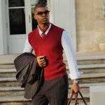 A traditional large paisley design in sophisticated shades of red will add an artistic flair to your look.
