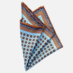 This pocket square features a timeless medallion print—a true classic in men's fashion. I named it after the city of Imola, known for its famous car race track and beautiful ceramic tiles.