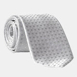 This luxurious woven jacquard tie in silver grey, with a subtle white and grey micro geometric pattern, adds a touch of timeless sophistication to your look.
