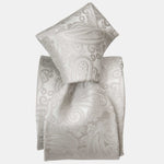 I believe in choosing pieces that stand out, which is why I love this intricate woven jacquard paisley tie in silver pearl.