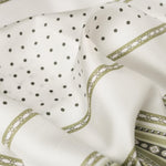 With its classic polka dot pattern and unique geometric border, this piece is all about making a statement without trying too hard.