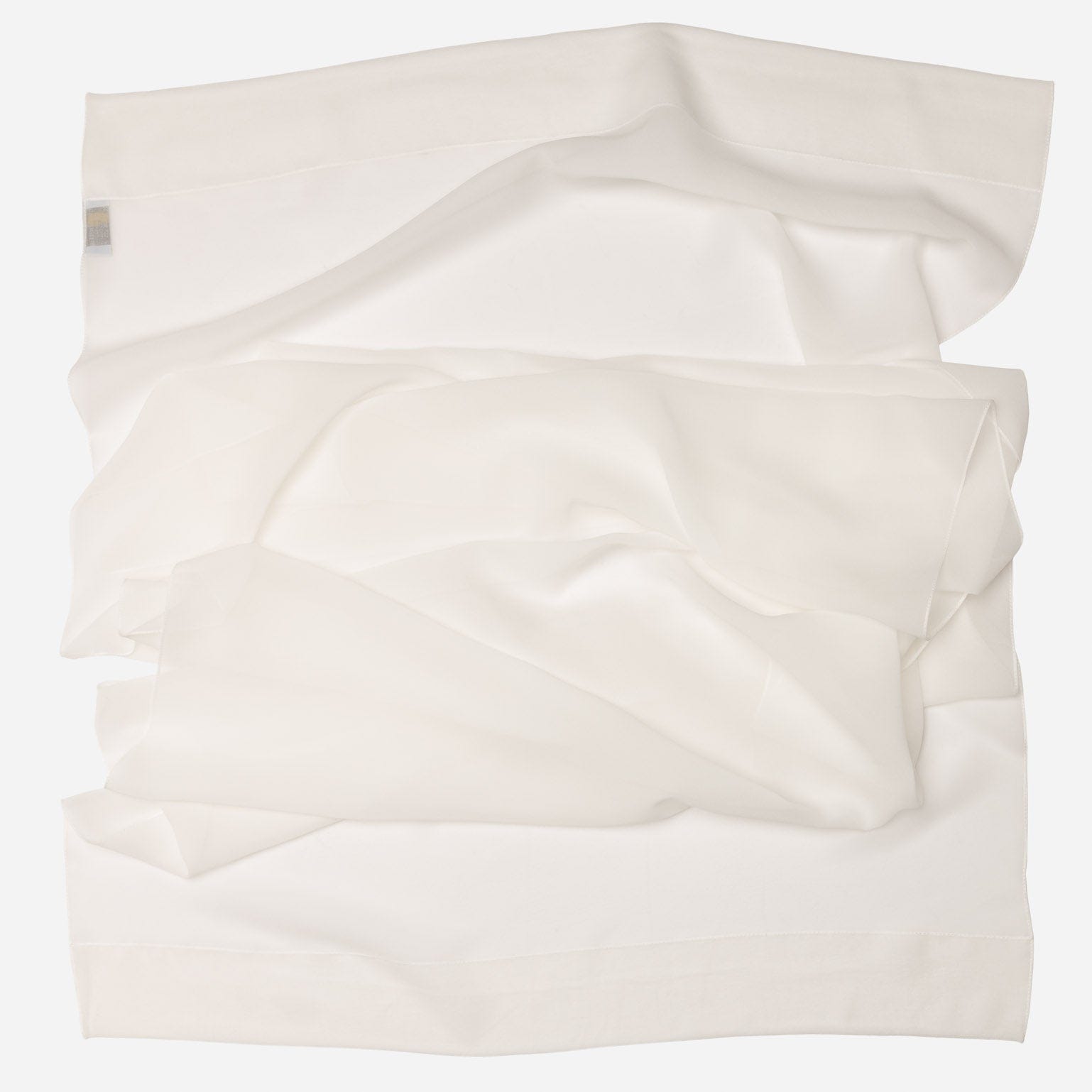 Our gossamer-light silk Georgette wrap in classic white is soft, flowing, and incredibly versatile—perfect for adding a touch of femininity to any outfit.