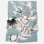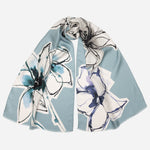 This long, fluid scarf combines modern watercolor washes with fine pen-drawn blooms for a look that’s artistic, fresh, and effortlessly feminine