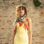 A timeless 35" silk square, printed on luxurious silk satin and finished with hand-rolled hems.