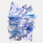 Named after the famous piazza in Rome, Campo de' Fiori (field of flowers), this sheer silk Georgette long scarf has a floral print in shades of blue.