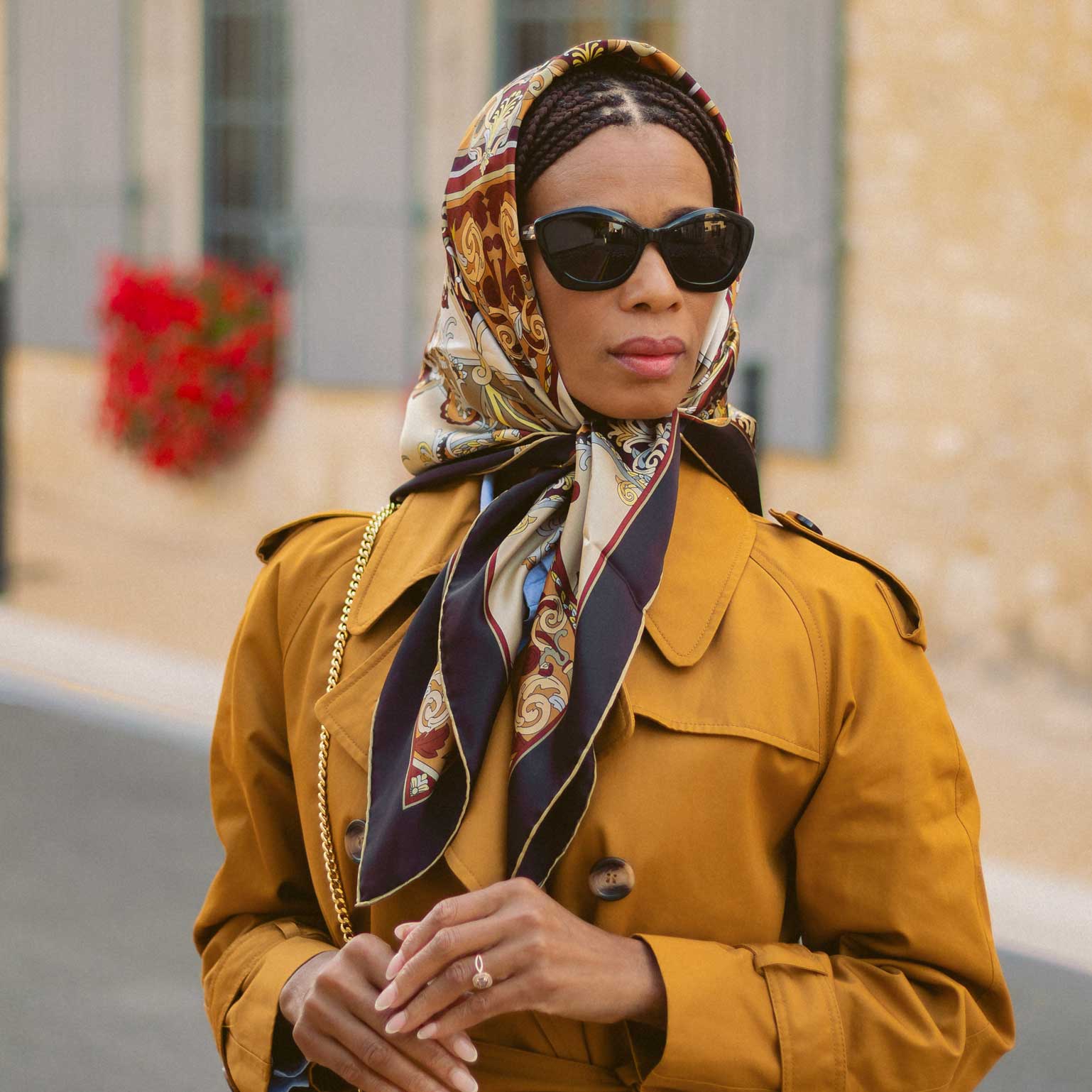 • Classic foulard size: Approx. 35" x 35" (90 x 90cm). Once made famous by the likes of Audrey Hepburn, Sophia Loren and Grace Kelly, a foulard will always add a touch of elegance to your look.