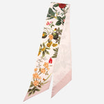 Ornella is a long, skinny silk scarf (also called a bandeau or large twilly), made in Como Italy from 100% silk twill. Tie her around your neck, wrist, bag, or hair.