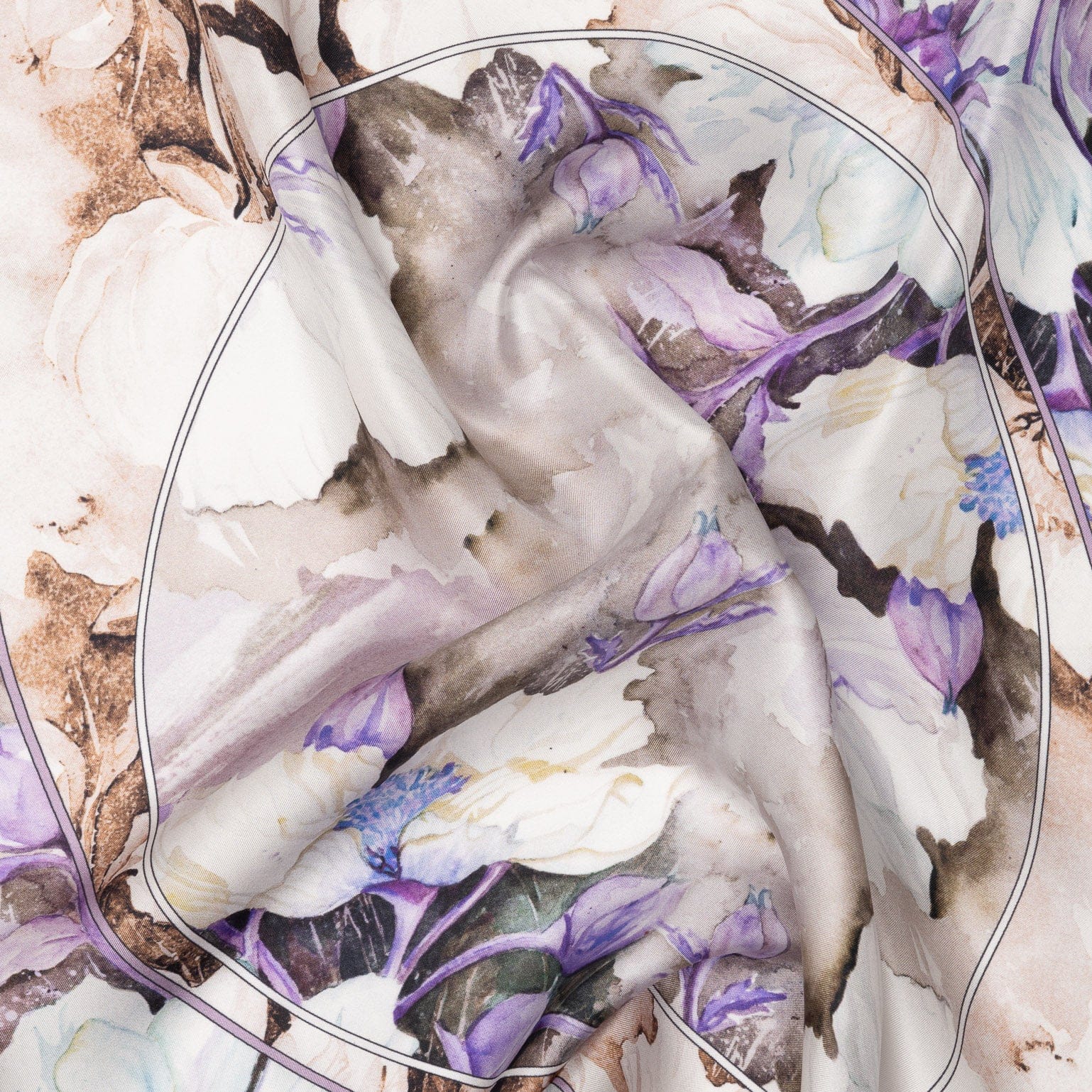The Odetta scarf is named for Tchaikovsky's swan princess — elegant, romantic, and quietly powerful. Printed in a dreamy watercolor floral, it floats on pure silk like petals on water.