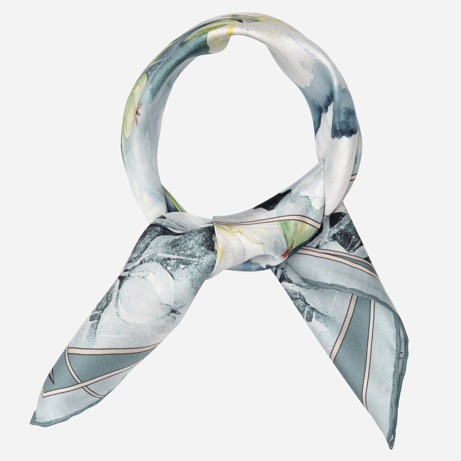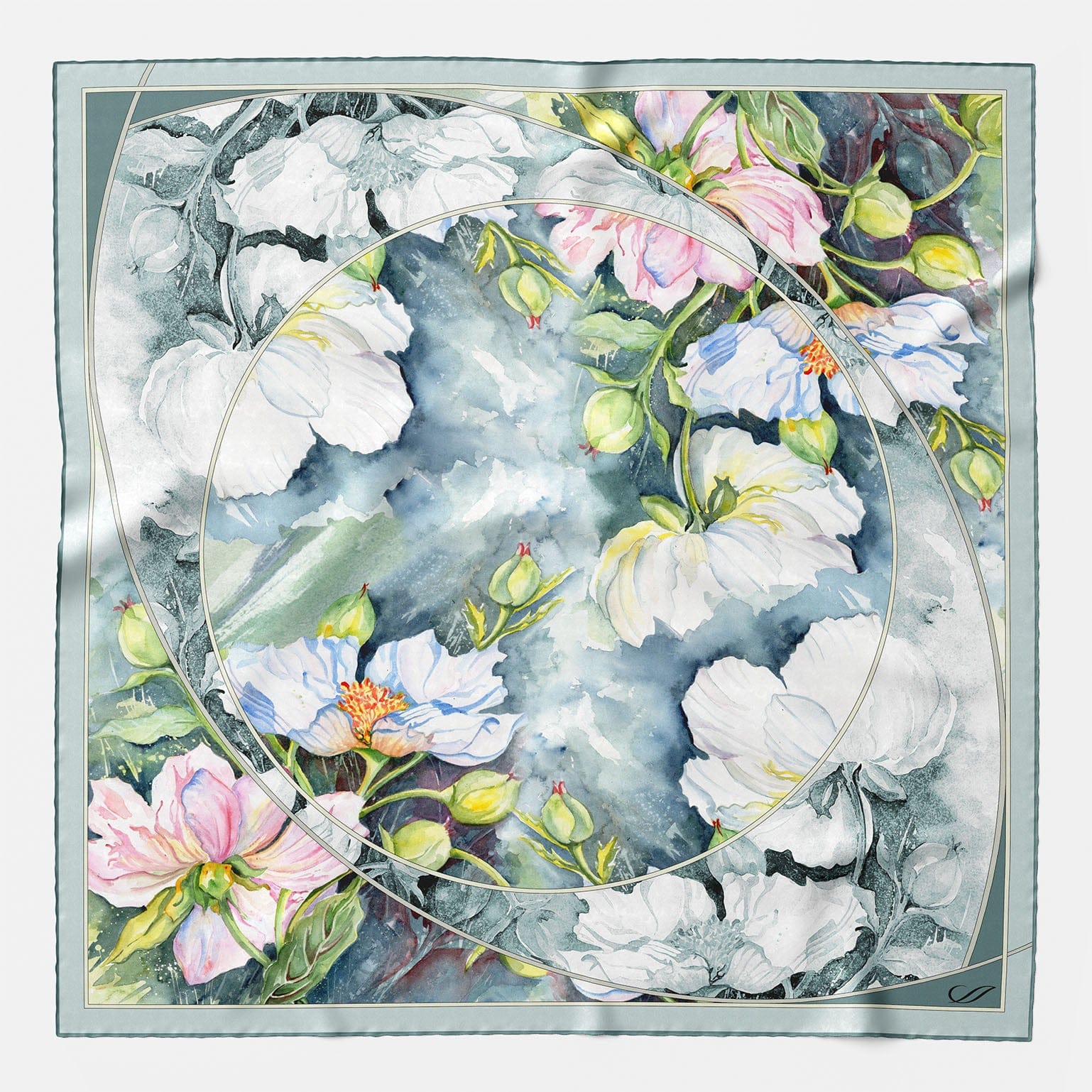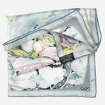 The Odetta scarf is named for Tchaikovsky's swan princess — elegant, romantic, and quietly powerful. Printed in a dreamy watercolor floral, it floats on pure silk like petals on water.