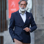 A micro geometric pattern inspired by the chic designs popular among Rome's fashionable men in the 60s and 70s, this ascot is a nod to a golden era of fashion.