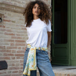 Inspired by my love for flowers and the stunning botanical gardens that grace many grand villas here in Italy, this scarf captures the essence of natural beauty and elegance.